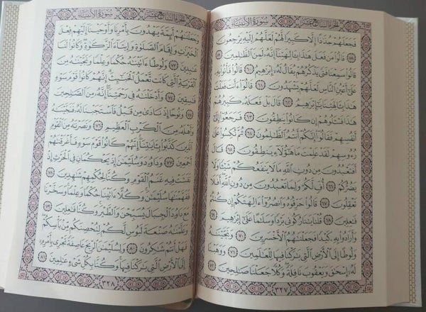 Een Quran in het Arabisch (Hafs) met een harde kaft van Suede.